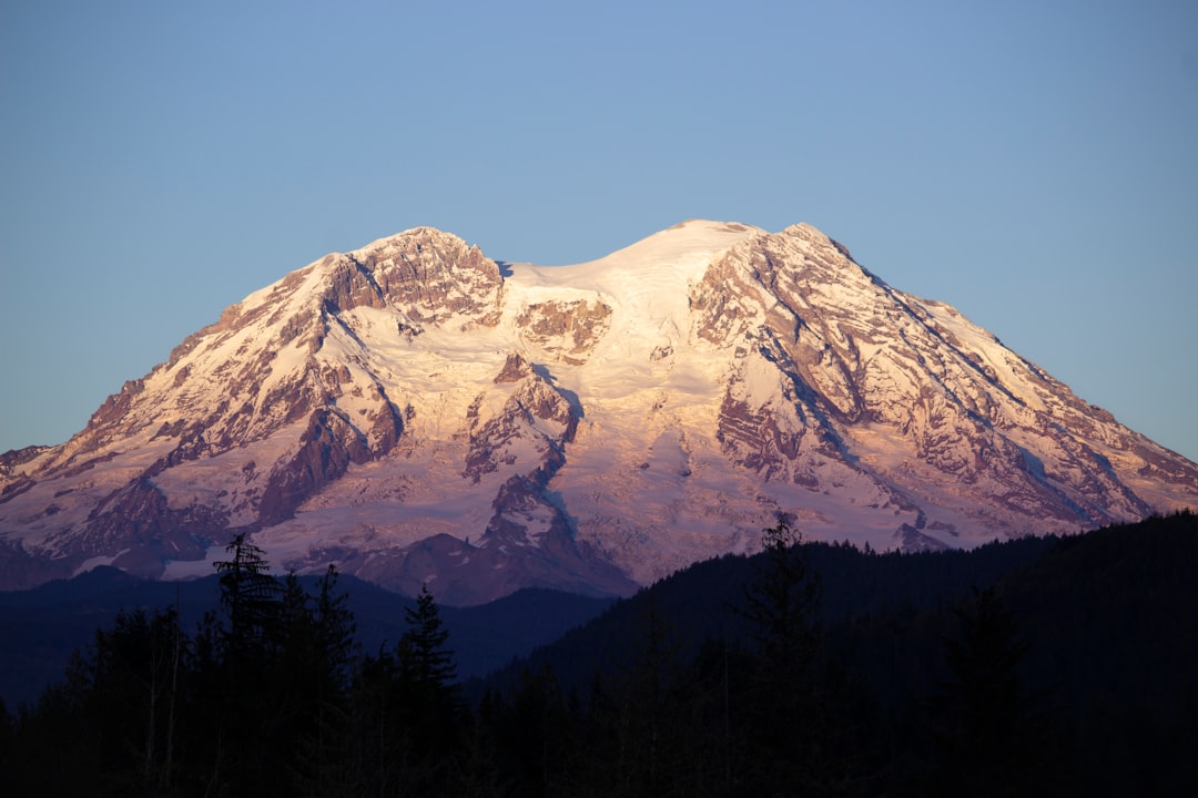 The pattern holds from Seattle too. Morning light also provides the sharpest contrast. The mountain catches the first sunlight while the foreground remains in shadow, making Rainier look almost impossibly bright against the darker sky. By afternoon, even on clear days, atmospheric scattering and haze reduce the contrast significantly.